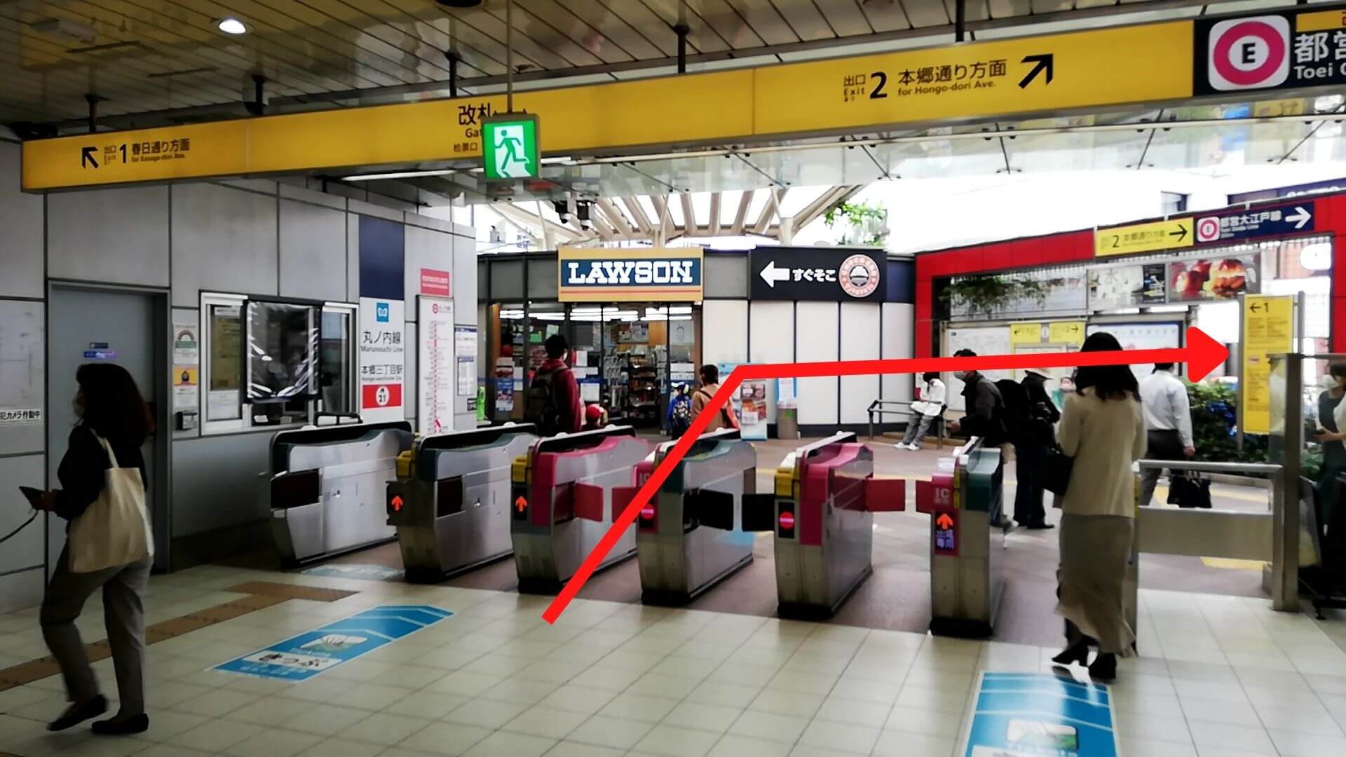 本郷三丁目駅に到着したら、改札を出て右に進めば金魚坂方面に進めます。あとはGoogleマップで位置を確認してね。